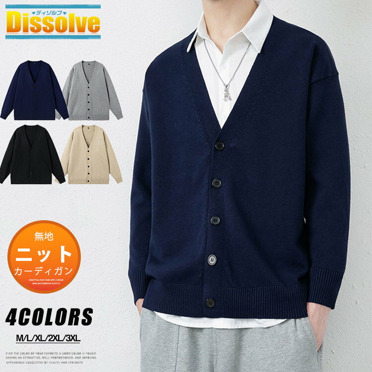 ニットカーディガン メンズ Vネック 無地 カーディガン 薄手 ニット 春服 秋服 はおり カーデ ライトアウター ビジネス 通学