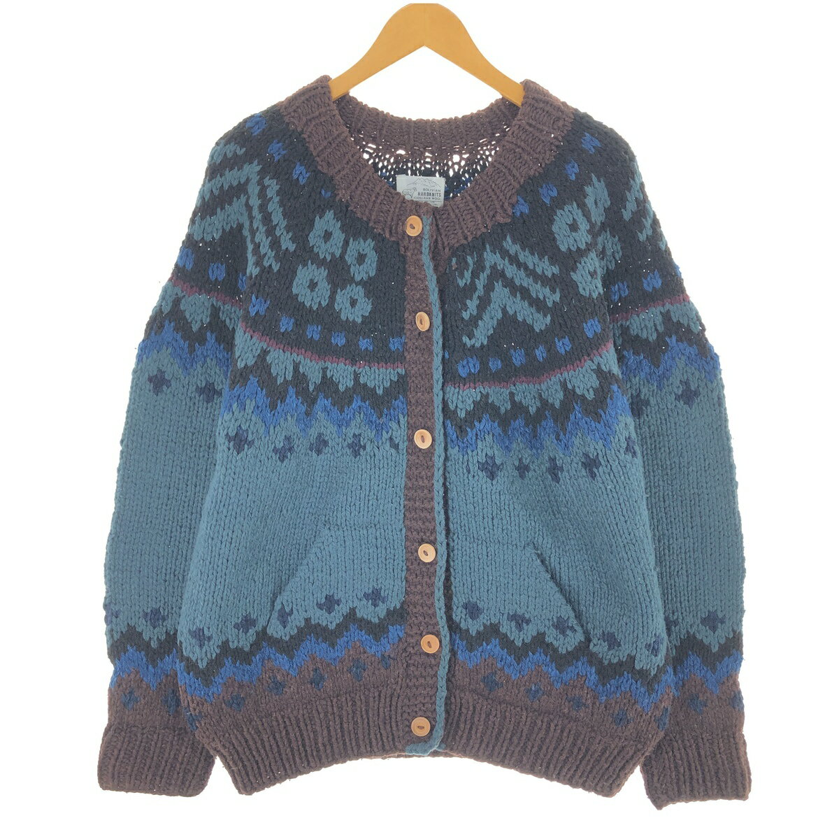 古着 総柄 HAND KNIT ハンドニットノルディック ウールニットカーディガン レディースXXL相当 /eaa466096 【中古】 【241013】