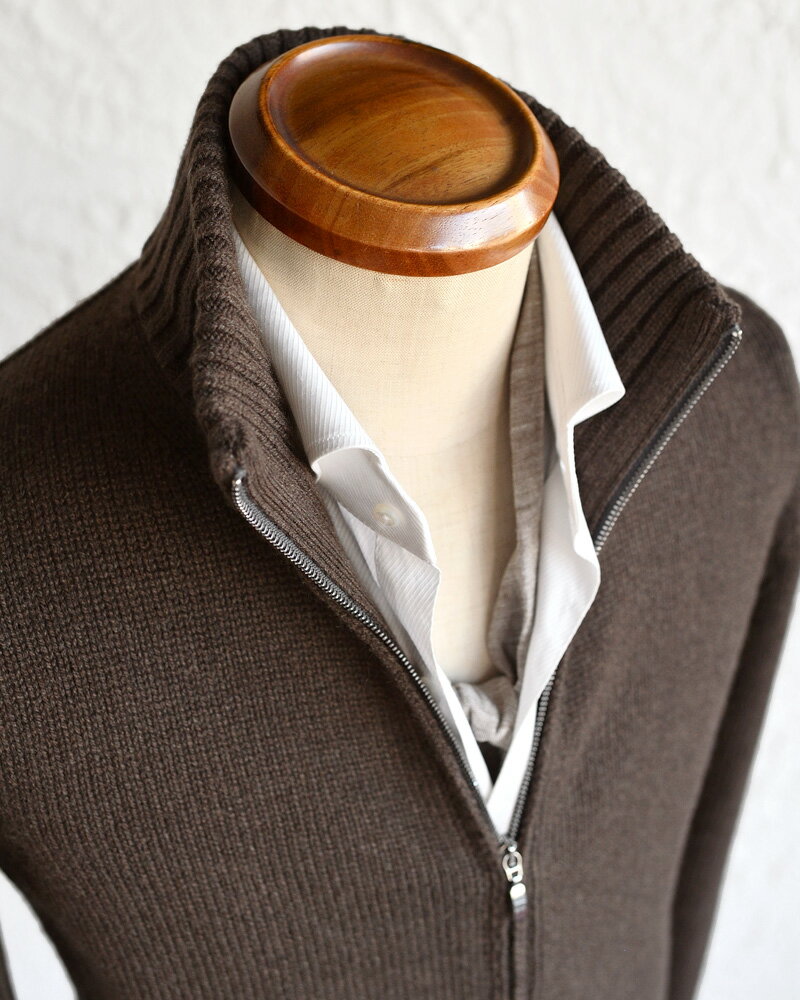 Settefili Cashmere セッテフィーリ カシミア / カシミヤ 3プライ ジップアップカーディガン ・art. 149/3 ZIPST ・col. WOOD ウッドブラウン ・made in Italy
