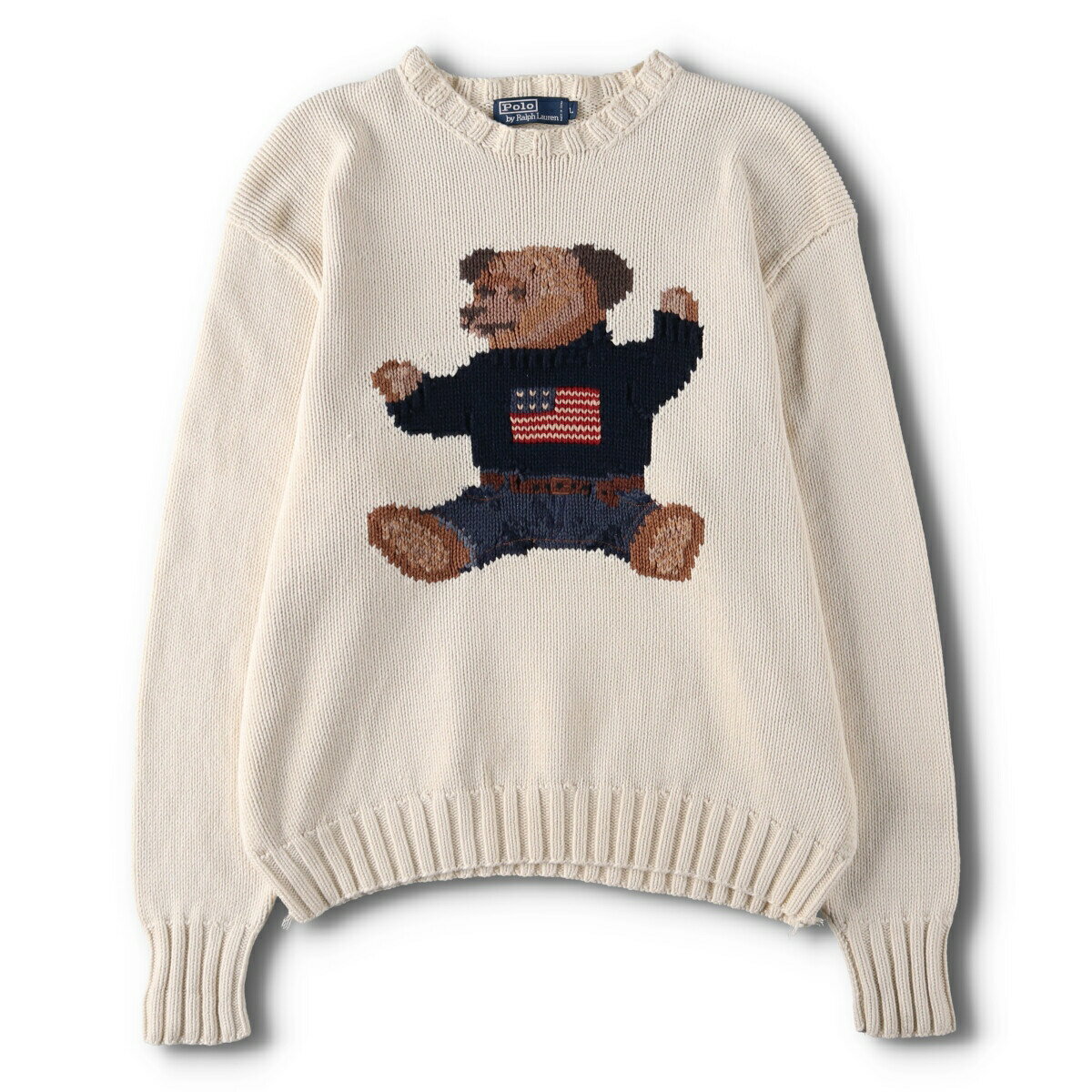 古着 90'S ラルフローレン Ralph Lauren POLO by Ralph Lauren HAND KNIT ハンドニット ポロベア コットンニットセーター メンズL相当 ヴィンテージ /eva003257 【中古】 【241116】 【N2412】