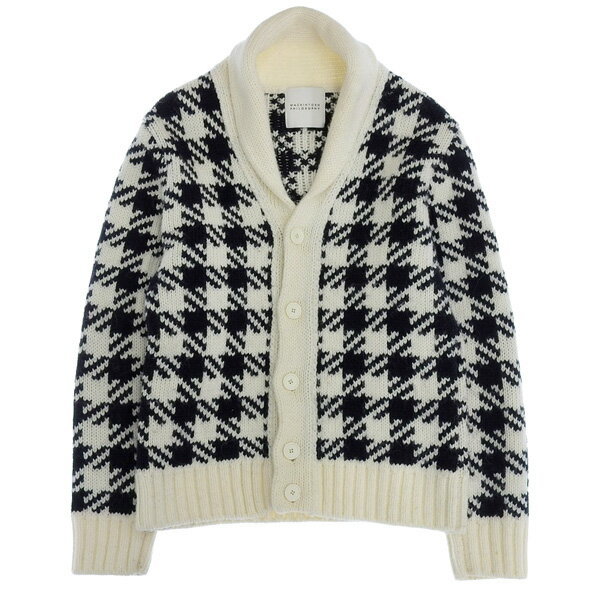 ◆超美品◆ マッキントッシュフィロソフィー MACKINTOSH PHILOSOPHY 千鳥格子 カウチン ニット カーディガン メンズ 白 size40 [Y02874]