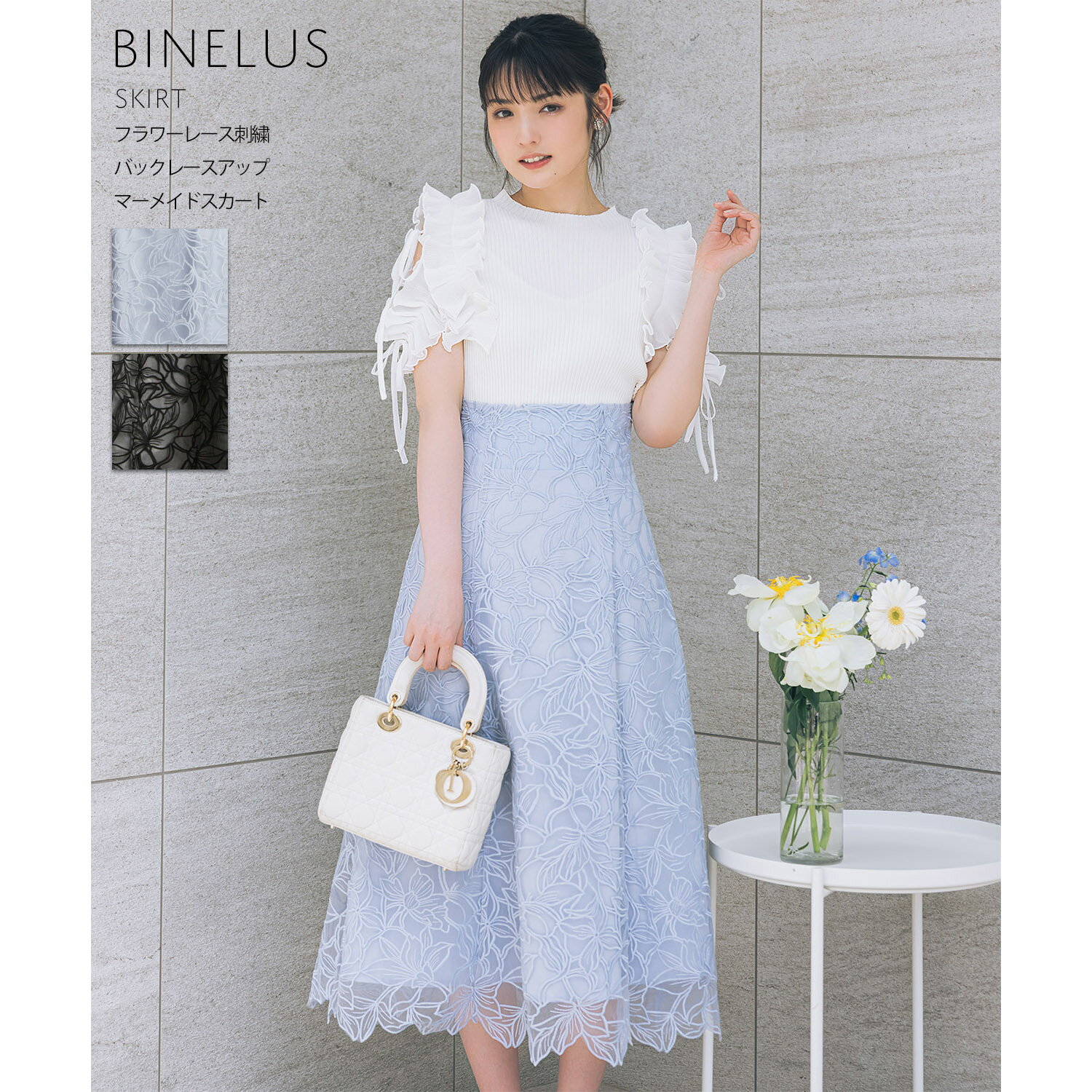 フラワーレース刺繍バックレースアップマーメイドスカート【binelus ビネラス】tocco closet(トッコクローゼット)※道重さゆみさんはグレイッシュブルー着用 グレイッシュブルー ブラック 商品番号:186-184445