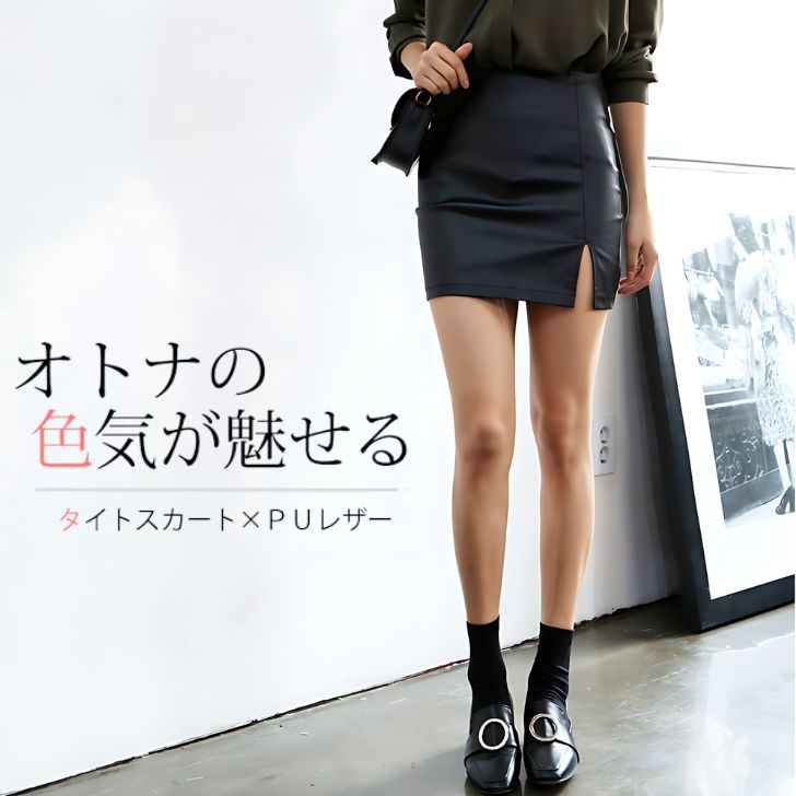 PU レザー スカート ミニ タイトスカート ミニスカート ミニスカ スリット マイクロミニ フェイクレザー レディース 春 夏 秋 ひざ丈 ミディアム丈 セクシー ブラック S/M/L/XL