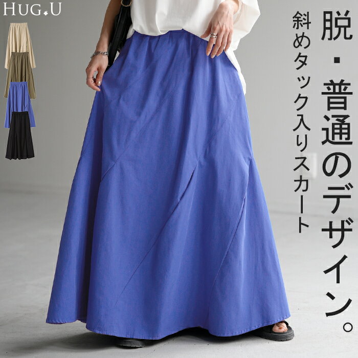 スカート ロング フレア レディース 【あす楽】 タック フレアスカート 体型カバー ポケット ボリューム 切り替えデザイン 裏地 ウエストゴム ハイウエスト タック入りスカート ロングスカート マキシスカート ボトムス Aライン 大きいサイズ ブルー 黒 春 夏 HUG.U