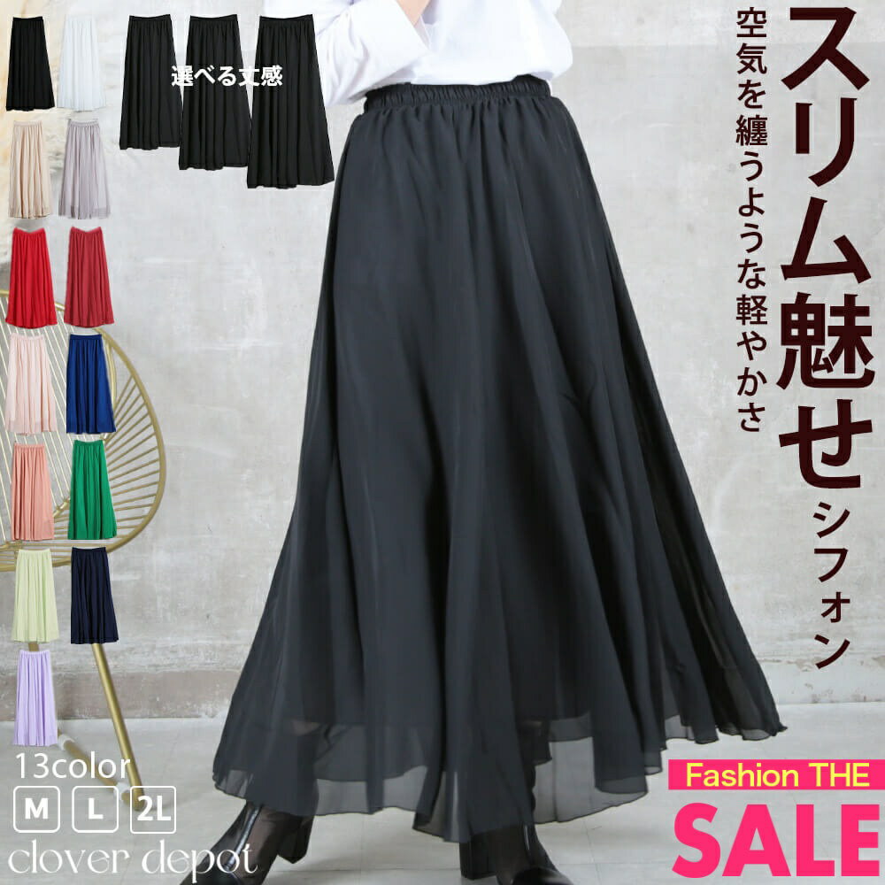 <23:59まで53%OFFクーポンで1871円!2点~>丈3種×13色 即納 スカート ロング ボリューム シフォン フレアスカート シフォンスカート ロングスカート 春 夏 演奏 会 用 黒 きれいめ マキシ 丈 ミモレ丈 レディース 無地 aライン 膝下 ネイビー コーラス ダンス 服