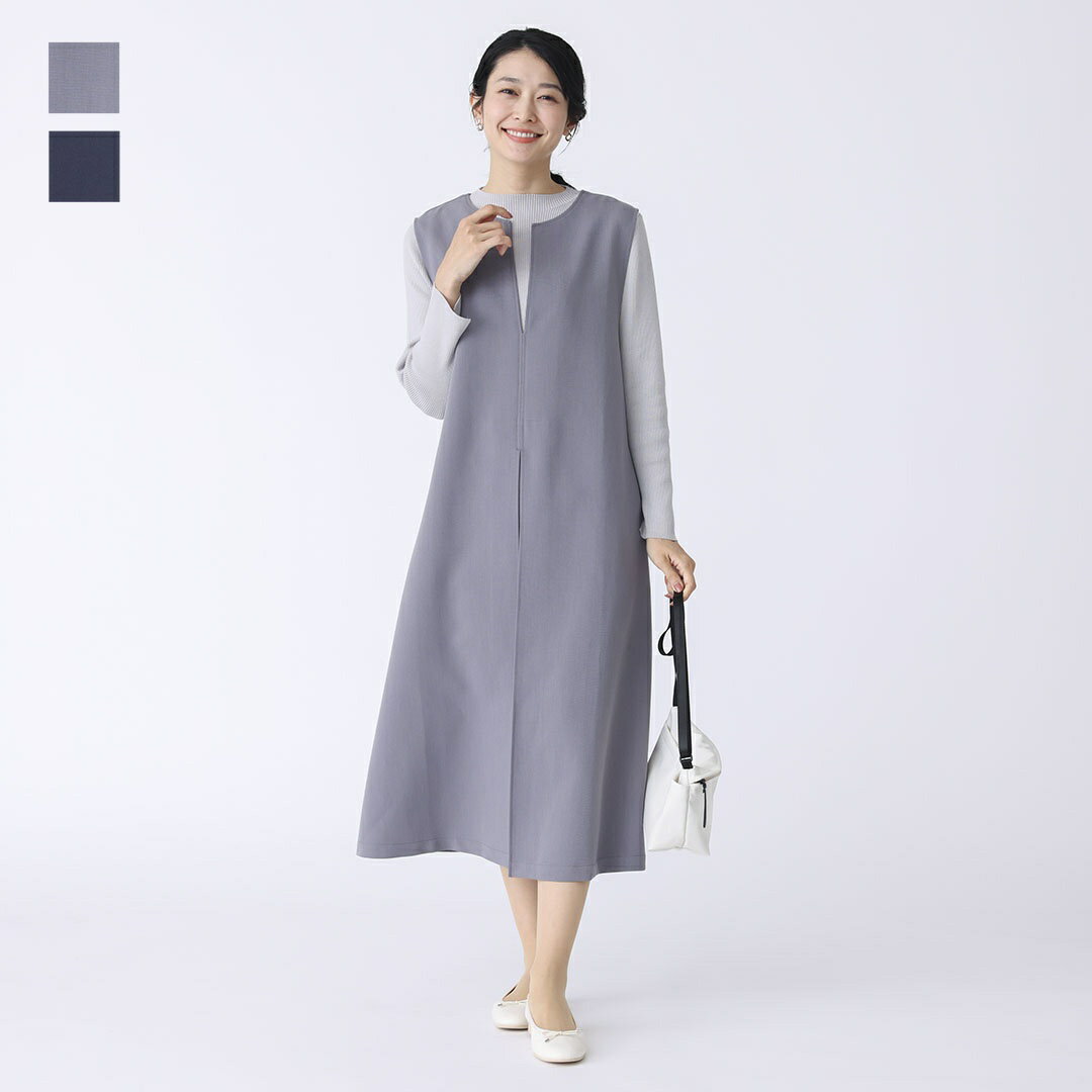 【KEYUCA公式店】ケユカ キーネックジャンパースカート [レディース ワンピース ジャンパースカート ストレッチ きれいめ Aライン フレア ロングシーズン ママ 30代 40代 50代 洗える ウォッシャブル 通販]
