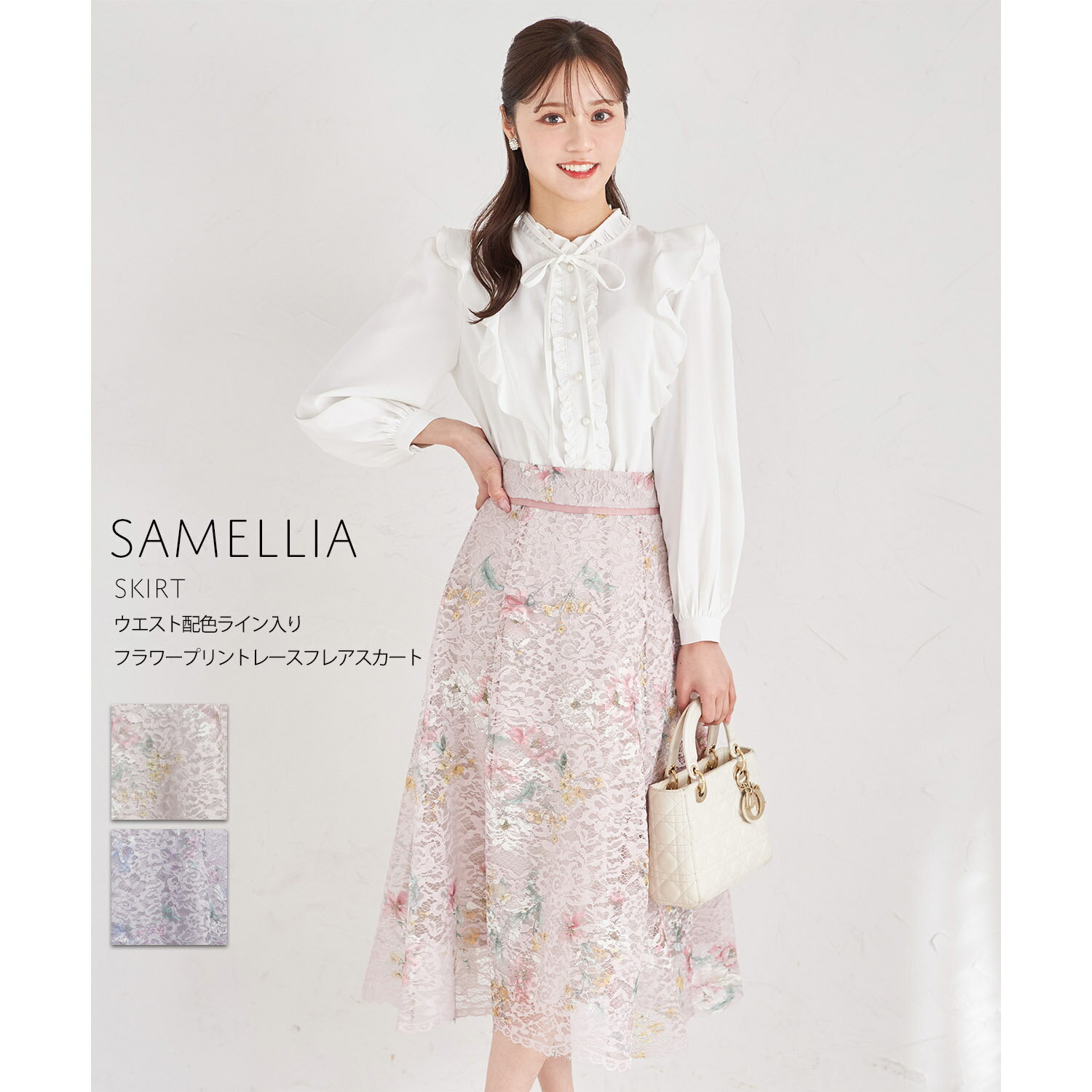 ウエスト配色ライン入りフラワープリントレースフレアスカート【samellia サメリア】tocco closet(トッコクローゼット) ピンク ラベンダー 商品番号:186-192772