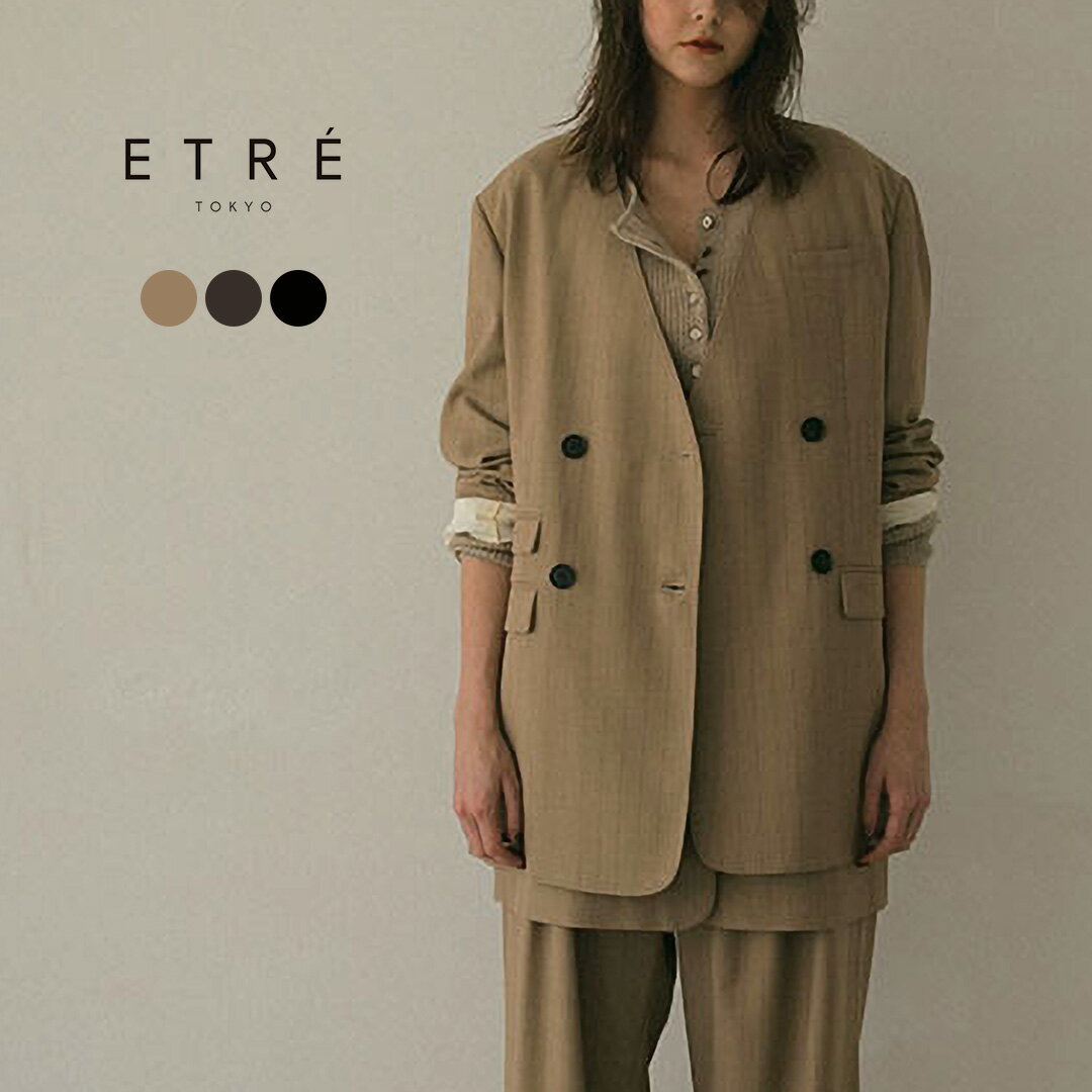 【予約販売:10月上旬発送予定】ETRE TOKYO(エトレトウキョウ) ノーカラーダブルブレストオーバージャケット / レディース アウター ライトアウター ノーカラー カジュアル 無地 1224501021-0