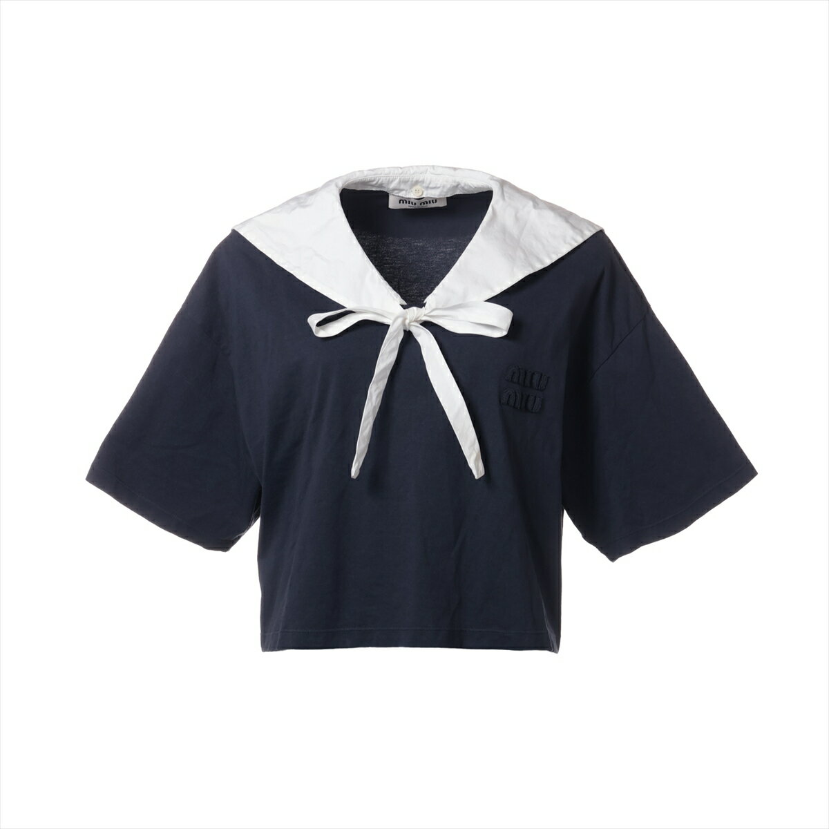 【中古】ミュウミュウ 22年 コットン Tシャツ S レディース ネイビー MJN393 襟取り外し可