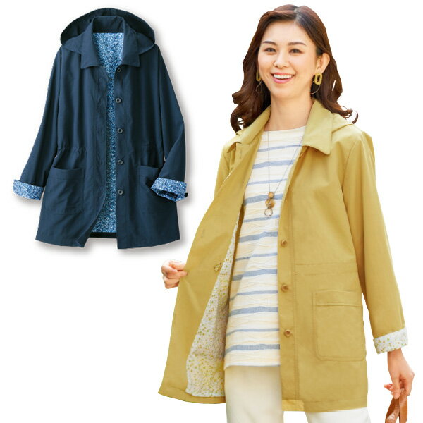 裏地がかわいいフード付はっ水ジャケット<イエロー ブルーグレー ネイビー|M L LL>