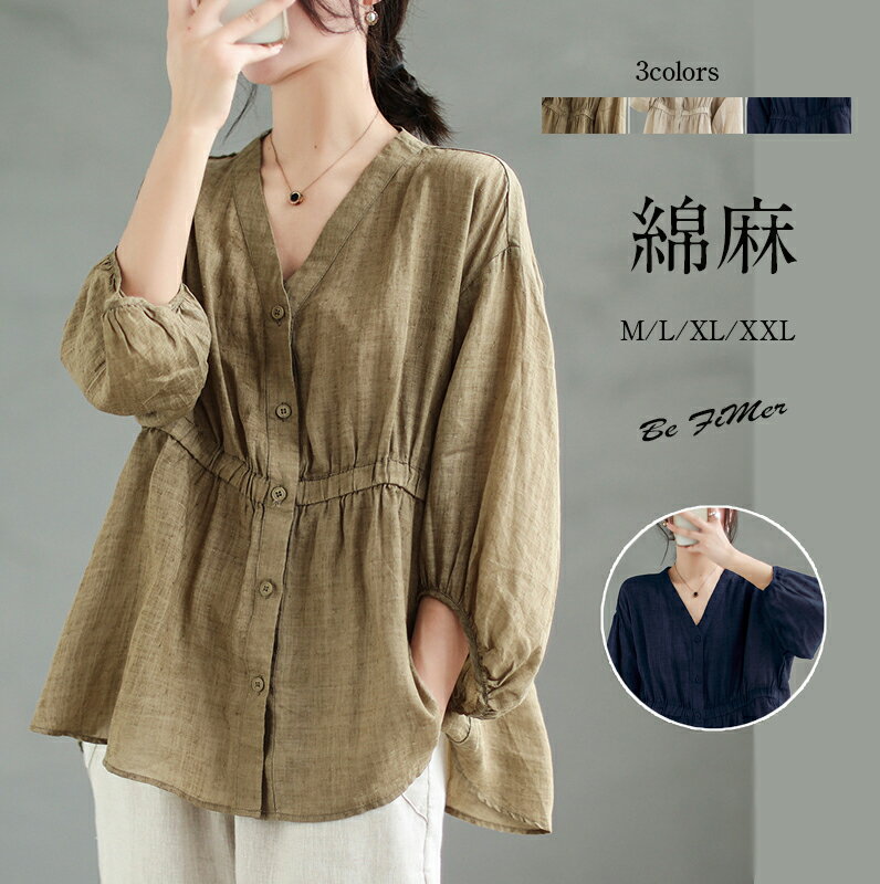 夏 綿麻シャツ レディース 綿麻 7分袖 無地 体型カバー 着痩せ お洒落 トップス 大きいサイズ ゆったり シンプル 薄手 トップス tシャツ カジュアル 春 夏 秋旅行 リゾートトップス おしゃれ カジュアル 大人可愛い 上品 母の日 気質 お出かけ デート 女子会