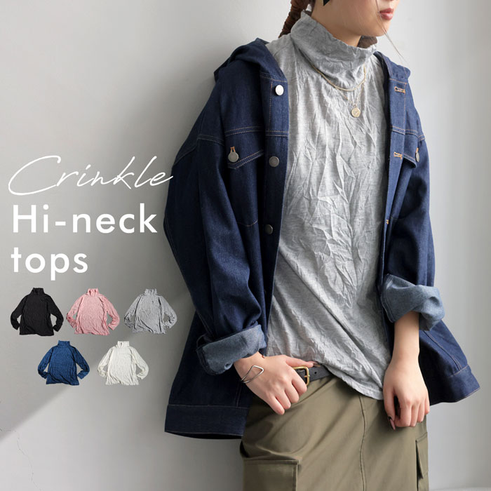 シワ加工 ハイネックトップス トップス レディース 送料無料・11月14日10時〜発売。(100)メール便可