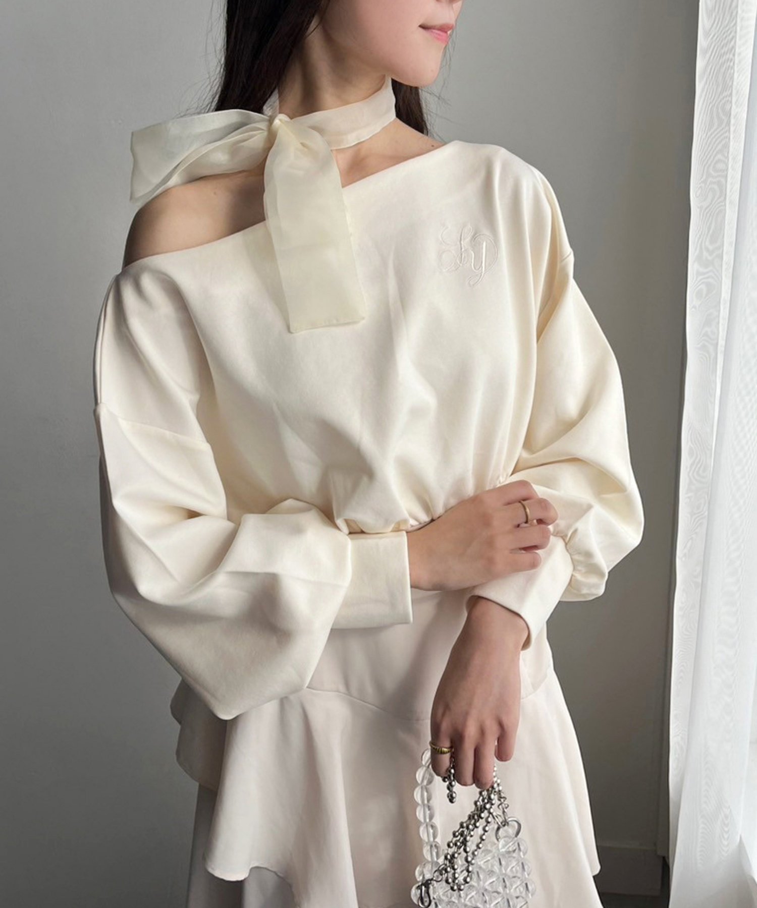 one after another NICE CLAUP スカーフ付きワンショルトップス ワンアフターアナザー ナイスクラップ トップス その他のトップス ホワイト グレー ネイビー イエロー ベージュ【送料無料】