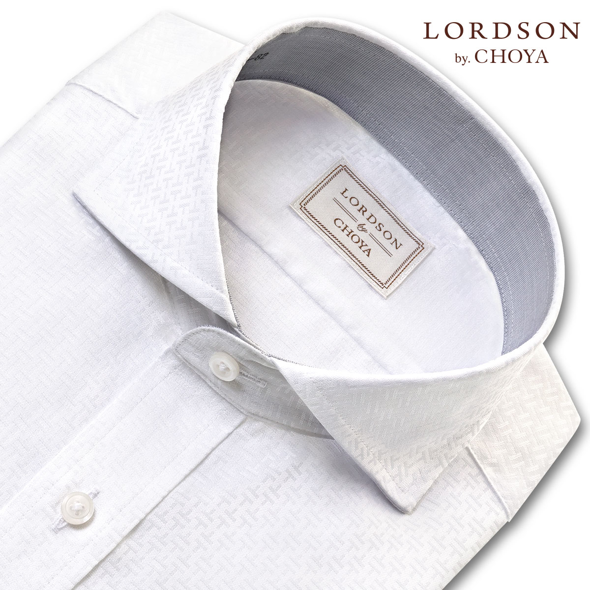 ワイシャツ メンズ 長袖 LORDSON 形態安定 白 ホワイト ジャガード織柄 幾何柄模様 ゲオメトリック カッタウェイワイドカラー 綿100% LORDSON(cod708-200) (sa1)