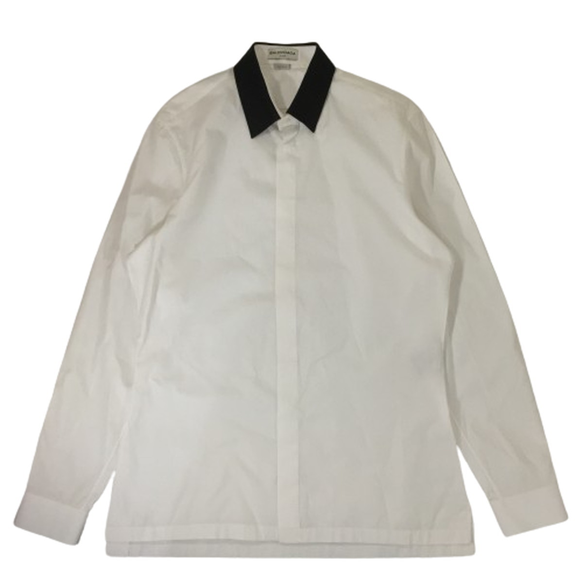 BALENCIAGA バレンシアガ シャツ 襟レザー 羊革 バイカラー 長袖 白 国内正規品 40 【中古】【A1】