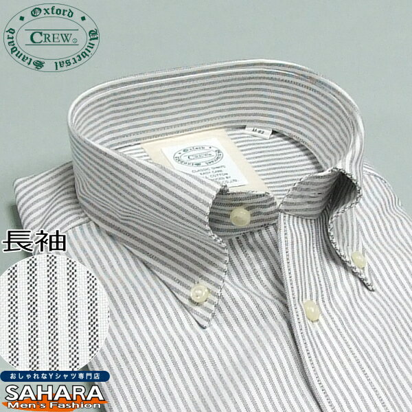 オックスフォードシャツ 綿100% オックスフォードBD 長袖 メンズワイシャツ CREW クルー ダークストライプ ボタンダウン カッターシャツ 標準体型
