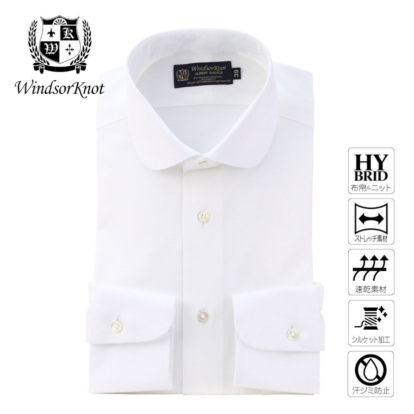 ワイシャツ ニット×布帛 ハイブリッド ニットシャツ ラウンド クレリック 白×白 無地 日本製 ストレッチ 機能素材 ドレスシャツ | 祝い 結婚式 ブランド おしゃれ メンズ ギフト 高級 トラッド 英国