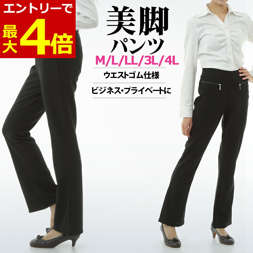 パンツ スラックス レディース M/L/LL/3L/4L ウエストゴム 黒 ブラックストレッチ 動きやすい 大きいサイズ ブーツカット 脚長 ボトム ビジネス ヨガ 運動 ミセス 仕事着 制服 発表会 ズボン 仕事用 オールシーズン