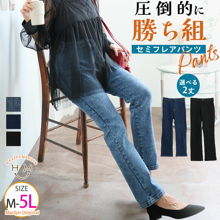 大きいサイズ レディース パンツ | 勝ち組パンツ! 圧倒的 美脚が叶う ストフレア パンツ _ オリジナル パンツ ボトムス フレアパンツ セミワイドパンツ LL 3L 4L 5L 秋 秋物 秋服 冬 冬物 冬服 ぽっちゃり ゆったり プラスサイズ カジュアル [448111]