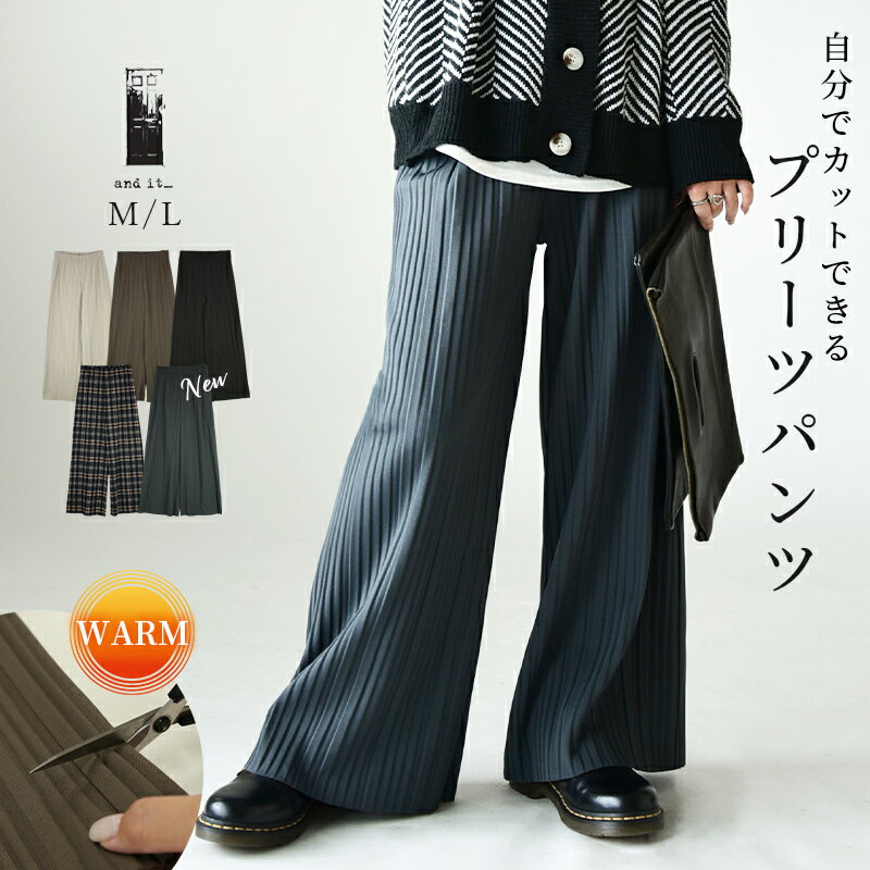 【9月6日〜予約販売開始】パンツ 裏起毛 プリーツ パンツ レディース 秋冬 セルフカット裏起毛プリーツパンツ 裏起毛パンツ ワイドパンツ あったかパンツ 暖かい 防寒 寒さ対策 冷え性対策 セルフカット 裾カット フリーカット 冬 24aw AW, M L PT01 メール便不可