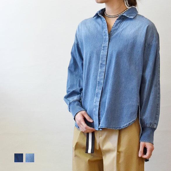 TOLNERA (トルネラ)スキッパーカラー 袖口リブ デニムブラウス(pt002)(T51014TO)