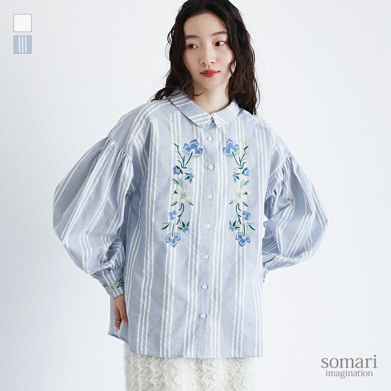 [12/26 1:59迄クーポンで最大20%OFF]ブラウス シャツ レディース トップス ボタンシャツ 前開きシャツ 襟付きシャツ 柄シャツ 襟付き 長袖 パフスリーブ ぽわん袖 バルーン袖 ボリューム袖 花柄 フラワー フレア 無地 綿混 コットン【メール便不可】【20】