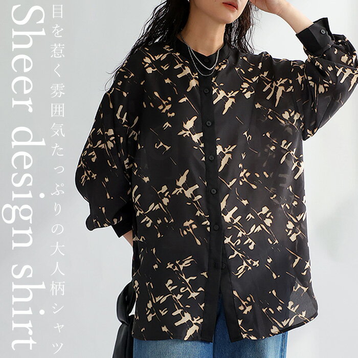 シアーシャツ シャツ レディース トップス 長袖 柄 送料無料・5月19日10時~発売。(100)メール便可