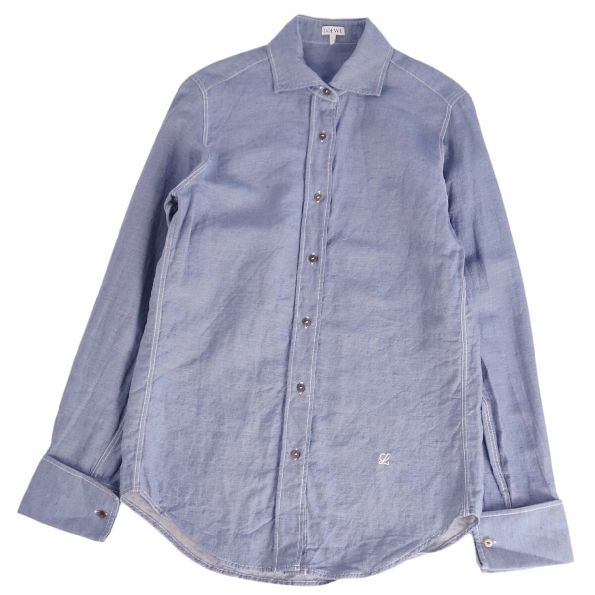 【美品】ロエベ LOEWE シャツ デニムシャツ ロングスリーブ 長袖 リネン コットン トップス レディース 36(S相当) ブルー【中古】