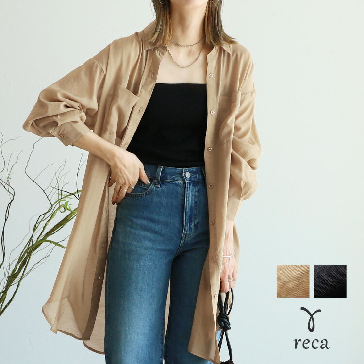 【24日(土)20時開始!】ロングシアーシャツ(y4409) レディース 2024年秋新作 シャツ ブラウス 羽織 シアー シアーシャツ ロングシャツ 透け感 カジュアル シンプル 体型カバー ボリューム袖 長袖 トップス 秋 reca レカ ネコポス発送10 s