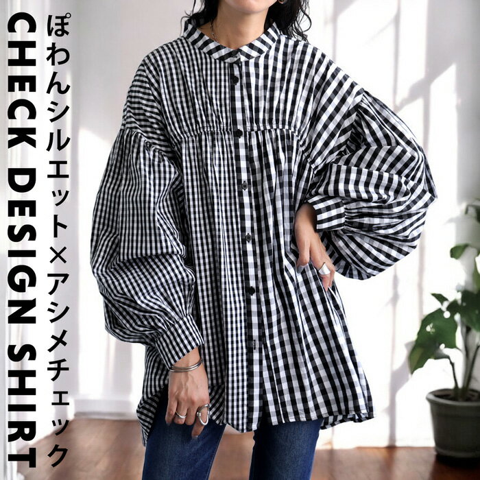 返品交換送料無料 トップス 長袖 ギンガムチェック 【しっかり映えるギンガムチェックトップス】チェック バイカラー キナリ 切替え ナチュラル ブラウス 綿 コットン シンプル 体型カバー ゆったり レディース ファッション 30代 40代 50代 60代 sanpo【b14342ck】