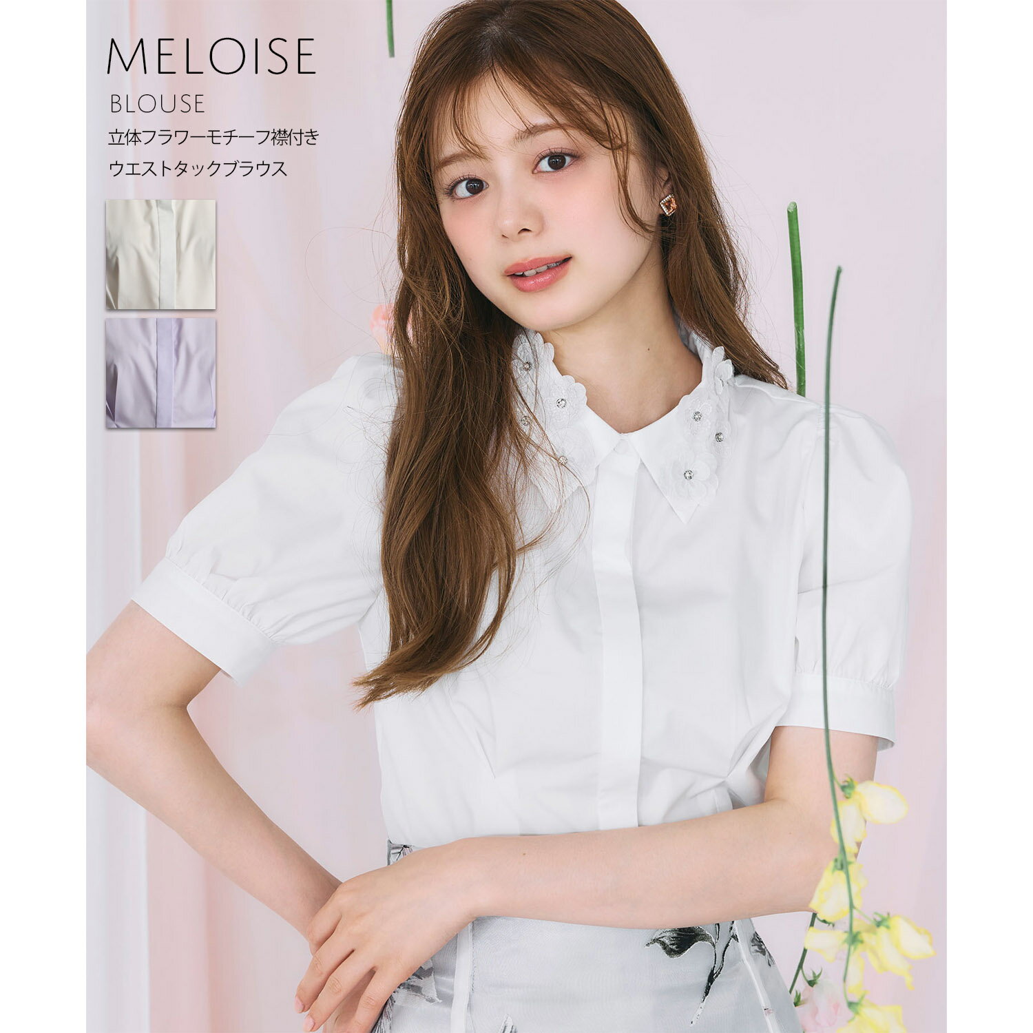 立体フラワーモチーフ襟付きウエストタックブラウス【meloise ミロイス】tocco closet(トッコクローゼット) ※紺野彩夏さんはオフホワイト着用 オフホワイト ラベンダーー 商品番号:186-195830