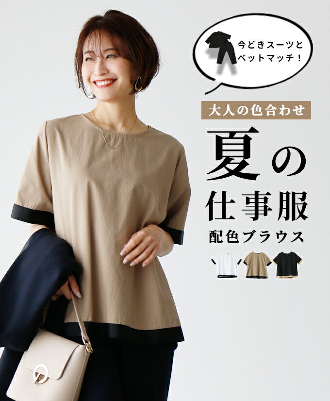 ブラウス 半袖 体型カバー オフィスカジュアルブラウス レディース 半袖 トップス レディース 夏 40代 配色 Ehre style インナー パイピング デザイントップス フレア 夏 送料無料 ファッション フリーサイズ スタイル【F220628】6/12再入荷