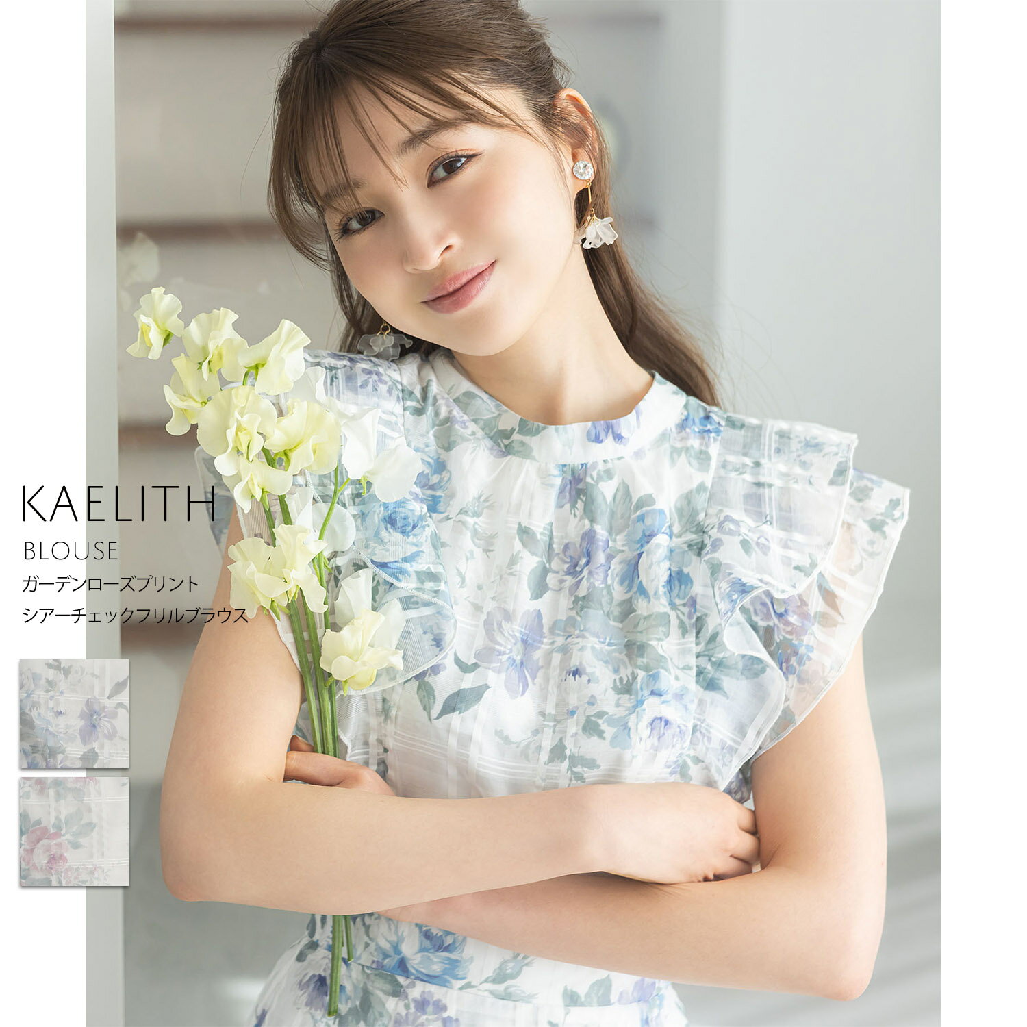 ガーデンローズプリントシアーチェックフリルブラウス【kaelith カイリス】tocco closet(トッコクローゼット) ※上西星来さんはブルー着用 ブルー ピンク 商品番号:186-194142