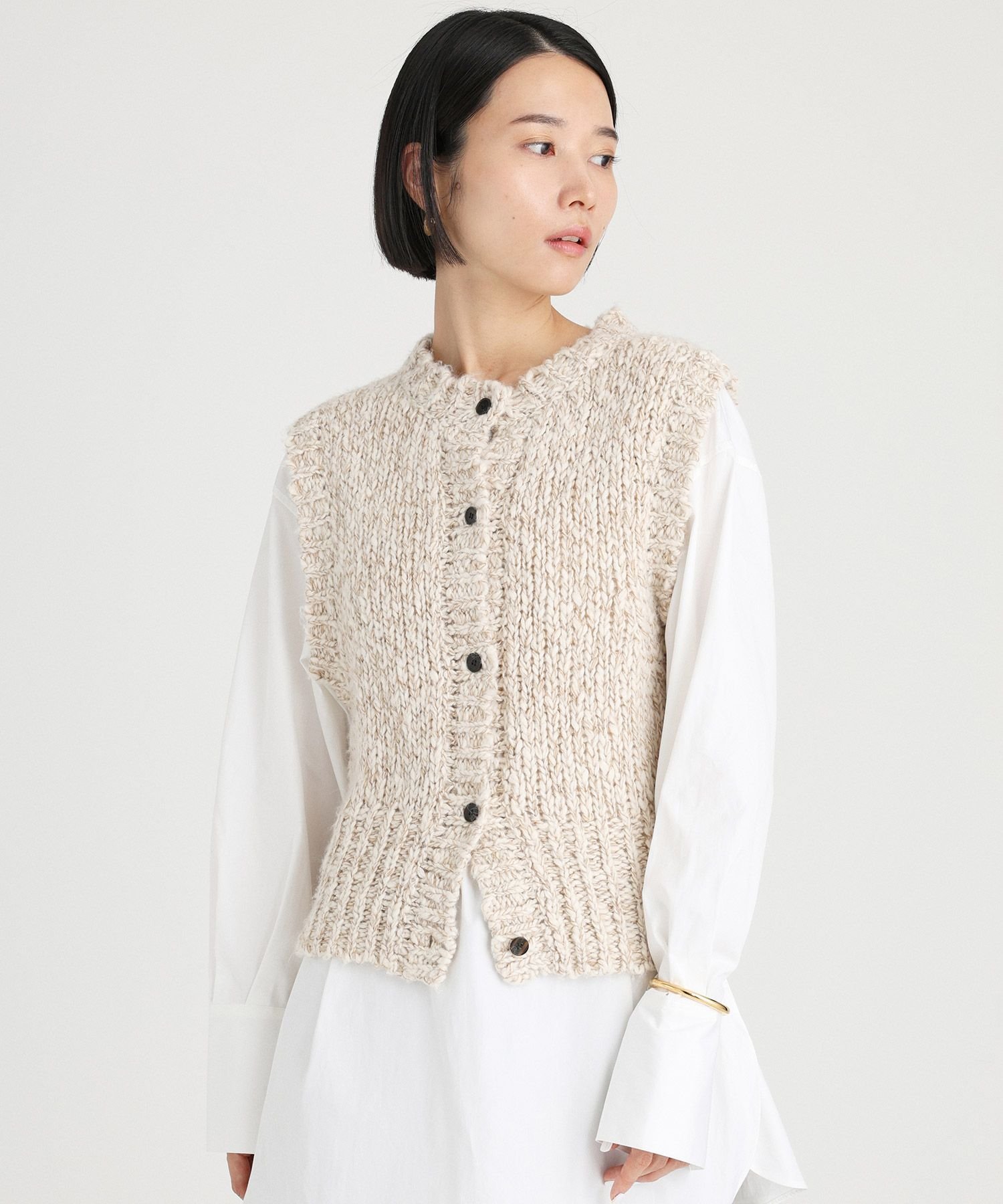 【SALE/40%OFF】BABYLONE スラブニットベスト バビロン トップス ニット ベージュ グリーン【送料無料】