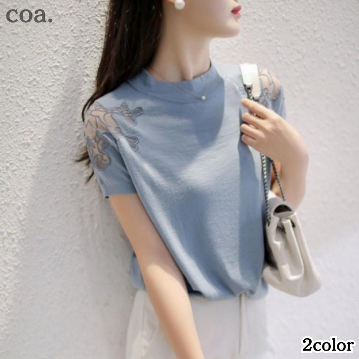 サマーニット トップス レディース Tシャツ サマー ニット シャツ ニットシャツ 半袖 カットソー 大人 シンプル お洒落 可愛い お出かけ カジュアル