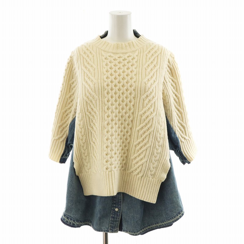 【中古】サカイ sacai デニム ニット コンボ Denim Knit Combo カットソー 5分袖 2 アイボリー 青 ブルー 18-04118 /AN29 レディース 【ベクトル 古着】 250526