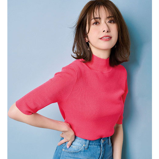 ニットプルオーバー ひんやり!ハイネック5分袖サマーニット(M~3L) レディース ファッション ラナン RANAN 夏 夏服 ニット トップス