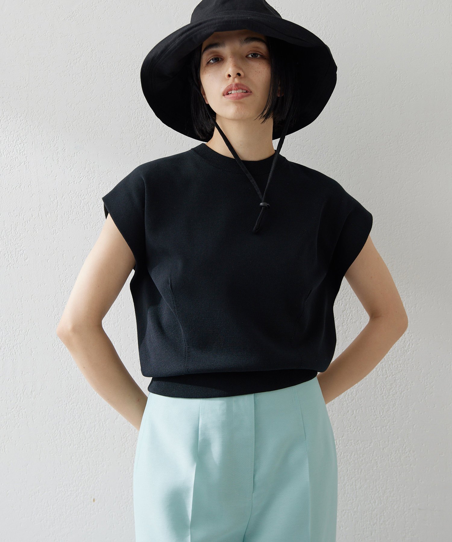 Whim Gazette クルーネックノースリーブプルオーバー ウィム ガゼット トップス ニット ブラック ホワイト ベージュ【送料無料】