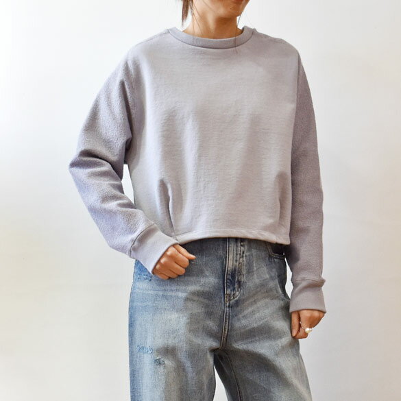 [SALE セール] プリット prit タオルデニムクルーネックスラッシュポケットワイドプルオーバー P80544 レディース 日本製 無地 トップス 2024秋冬 [返品・交換不可]