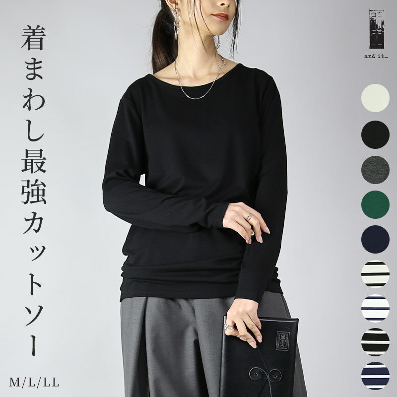 【クーポンで200円OFF 3/11 11:59まで】カットソー レディース 長袖 のびのびストレッチシンプルロングカットソー トップス ロンティー ロングティーシャツ Tシャツ ロング丈 ロングTシャツ ロンT 長袖Tシャツ 定番 人気商品 ロングセラー 無地 ボーダー M L LL メール便10