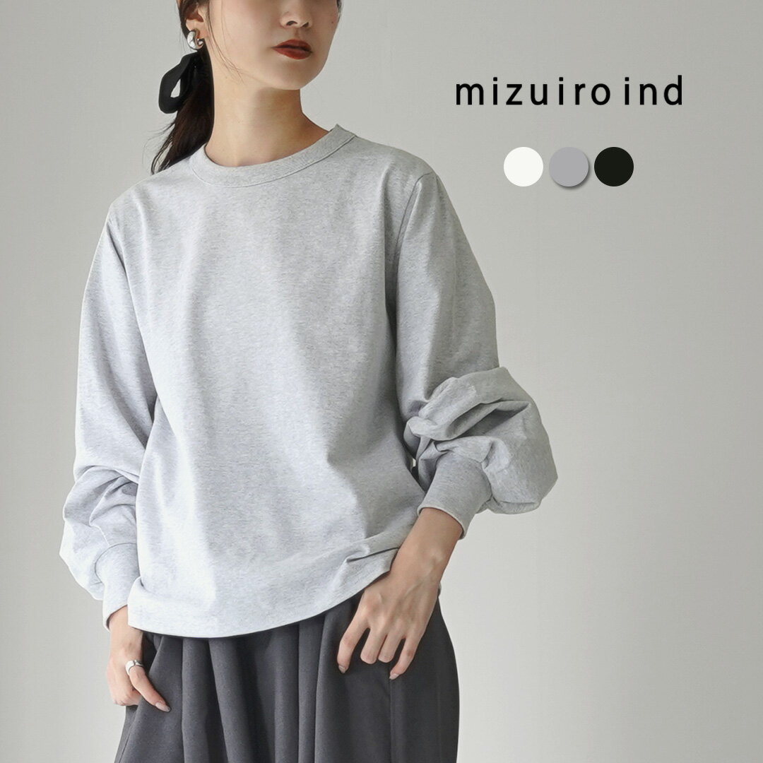 mizuiro ind(ミズイロインド) パフスリーブ ロングTEE / レディース カットソー クルーネック 長袖 綿100 日本製
