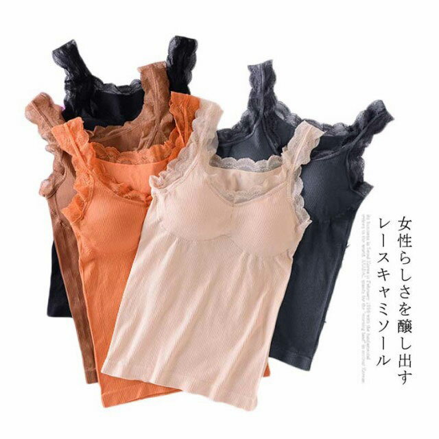 キャミソール レディース ノースリーブトップス ベスト レース タンクトップ カップ付き パッド付き ワイヤーレス レース付き 伸縮性 背中空き セクシー フェミニン 大人 お洒落 キレイめ トップス 夏新作