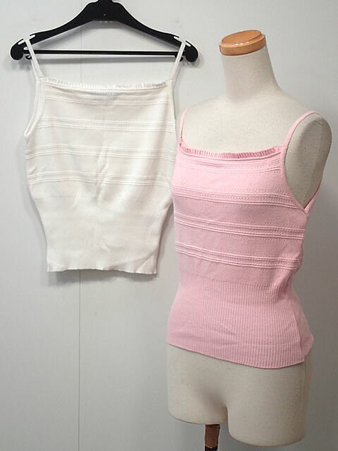 MOUSSY SQUARE LINE ニットキャミ マウジー トップス キャミソール ホワイト ブラック グリーン グレー【送料無料】