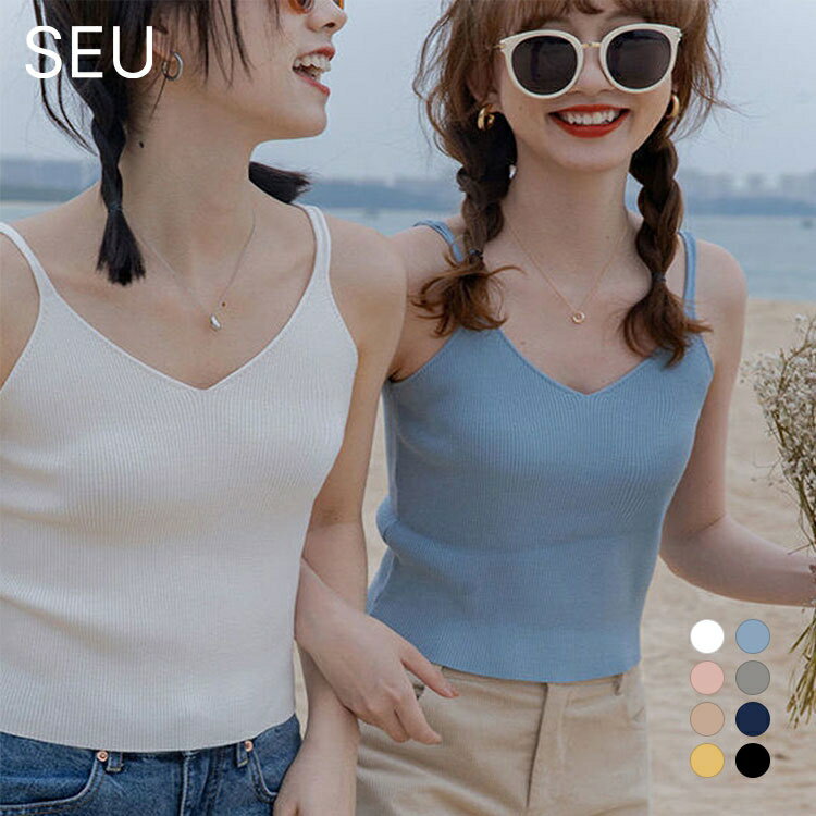 キャミソール インナー 春 夏 秋 冬 リブ キャミソール リブニット リブキャミ vネック インナー 重ね着 透けない 見えない 脇高設計 白 黒 ピンク ブルー イエロー ネイビー グレー ベージュ seu seu22q11069