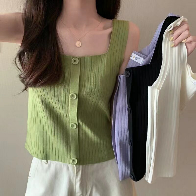 レディース キャミソール ニット 夏 クール トップス ノースリーブ 薄手 無地 可愛い ブラック ホワイト グリーン パープル S M L XL SLUA086