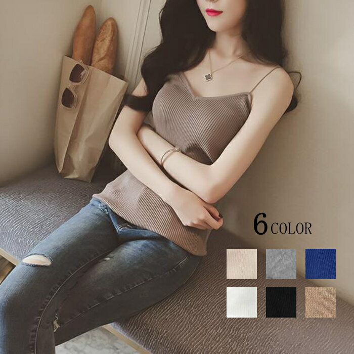在庫売り尽くし【返品不可】キャミソール 薄ニット インナー Vネック タンクトップ タイト スリム ノースリーブ リブ編み トップス 夏 レディース メール便送料無料おうちコーデ (アパレル)