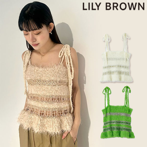 【SALE50%OFF】 【即納】 リリーブラウン LILY BROWN トップス 24春夏 フリンジフリルニットキャミトップス キャミソール ミドル丈 lwnt241053