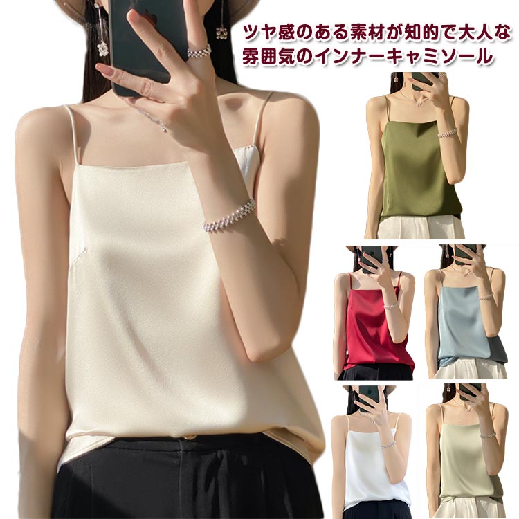 インナー レディース キャミソール インナーキャミイン サテン調 春夏 締めつけない トップス 部屋着 無地 肌着 シルクタッチ レイヤード 重ね着 光沢感 オフィス 上品 フォーマル 送料無料