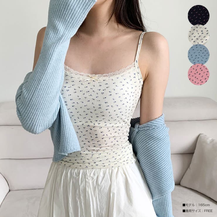 ehka sopo 小花柄カップ付きキャミソール エヘカソポ トップス キャミソール ブラック ブルー ベージュ グレー