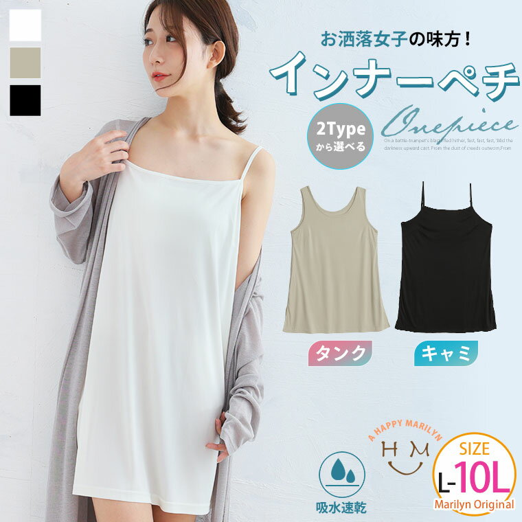 【4h限定全品20%オフクーポン】 大きいサイズ レディース インナー | 2型から選べる ロングタンク or キャミペチコート 快適インナー _ オリジナル トップス キャミソール キャミ タンクトップ タンク LL 3L 4L 5L 6L 7L 8L 9L 10L 夏 [659092/659093]